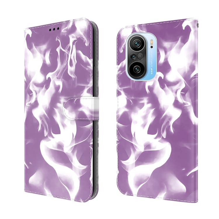 Para Xiaomi Redmi K40 / K40 Pro / Poco F3 Nube Nube Pattern Flip Horizontal Funda de Cuero con Soporte y Ranura para Tarjeta y Billetera (Púrpura)