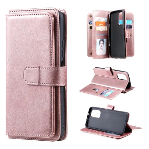 Para Xiaomi Redmi K40 Multifuncional Hebilla Magnética de Cobre Horizontal Flip de Color Sólido Funda de Cuero con 10 Tarjetas Slots & Wallet & Soporte y Marco de Fotos (Oro Rosa)