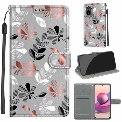 Para Xiaomi Redmi Note 10 4G / Nota 10S Dibujo de Color de Voltaje Dibujo Magnético Cierre de Cuero Horizontal Flip Pu Funda con Soporte y Ranuras para Tarjetas (Flor del Material C19)