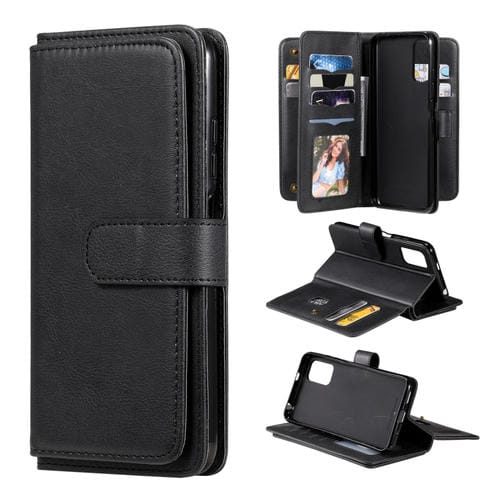 Para Xiaomi Redmi Note 10 5G Multifuncional Magnético Hebilla de Cobre Horizontal Flip Funda de Cuero de Color Sólido con 10 Ranuras para Tarjetas y Billetera y Soporte y Marco de Fotos (Negro)