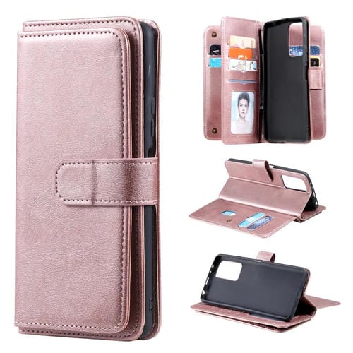 Para Xiaomi Redmi Note 10 Pro Funda de Cuero de Color Macizo Magnético Multifuncional de la Hebilla de Cobre Azul con 10 Tarjetas y Billetera y Soporte y Marco de Fotos (Oro Rosa)
