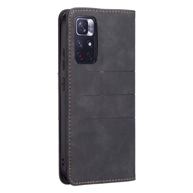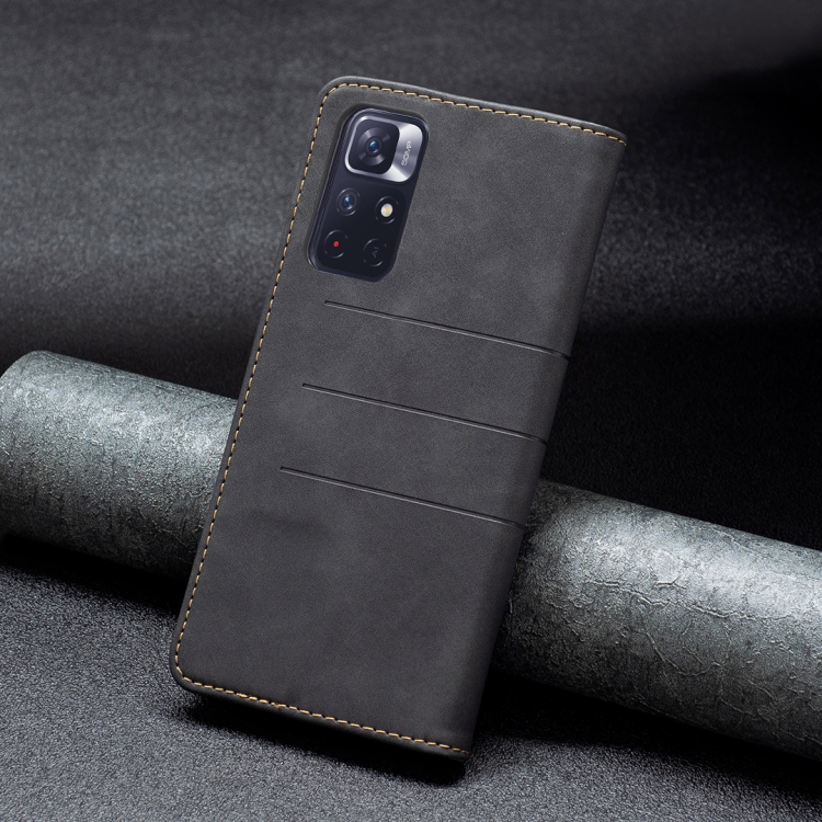Para Xiaomi Redmi Note 11 Elevación Magnética Funda Telefónica de Cuero (Negro)