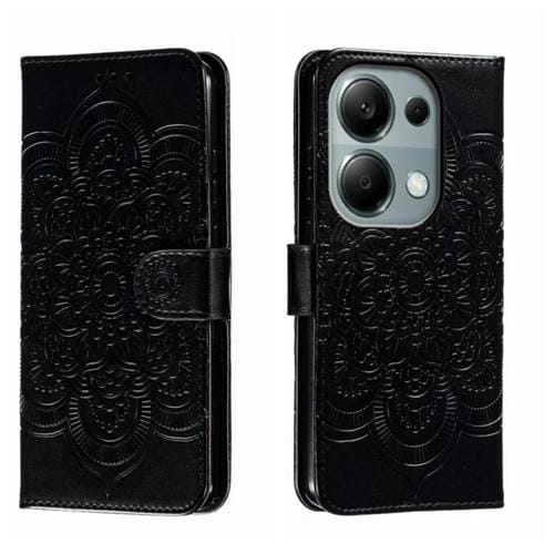 Para Xiaomi Redmi Note 13 Pro 4G Sun Mandala Funda de Cuero para Teléfono con Patrón En Relieve (Negro)