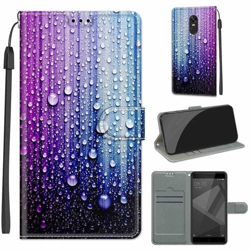 Para Xiaomi Redmi Note 4X Tensión de Color Dibujo de Color Magnético Cierre de Cuero Horizontal Flip Pu Funda con Soporte y Ranuras para Tarjetas (C05 Gotas de Agua Azul Púrpura)