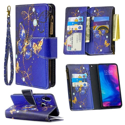Para Xiaomi Redmi Note 7 Patrón de Dibujo de Colores Cremallera Funda de Cuero con Tapa Horizontal con Soporte, Ranuras para Tarjetas y Billetera