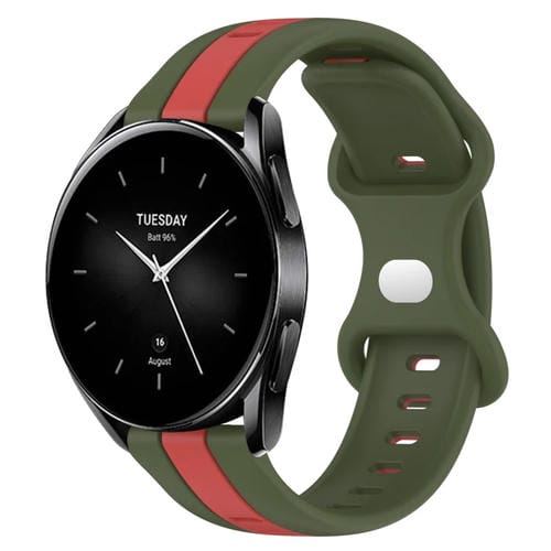 Correa de Silicona para Xiaomi Watch S2 42mm 22mm con Hebilla de Mariposa (Rojo + Verde Militar)