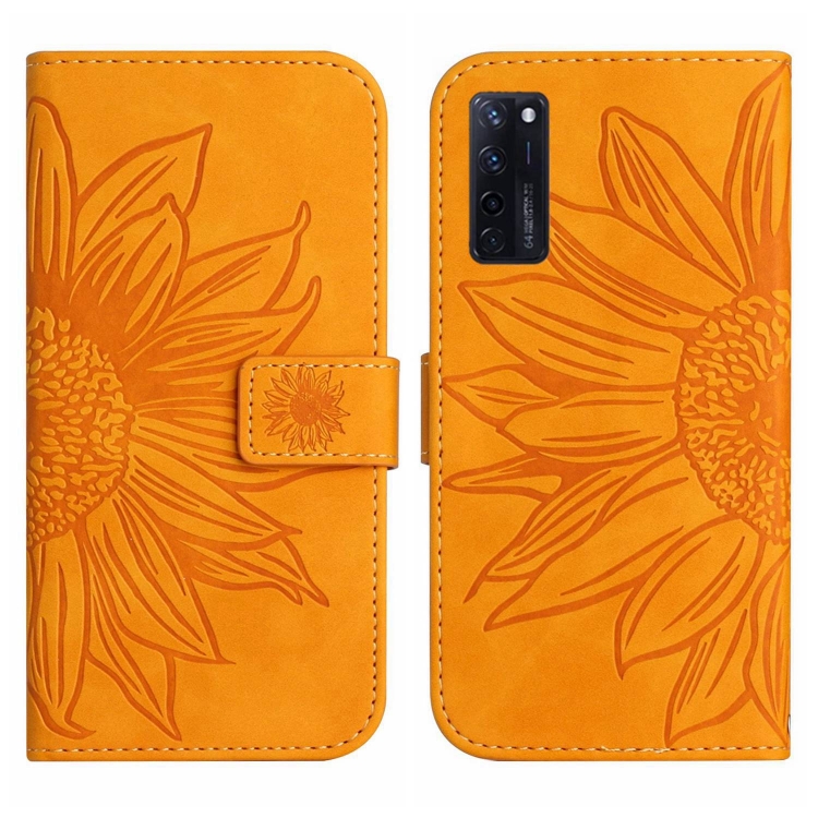 Funda Flip de Cuero ZTE Axon 20 4G/20 5G con Cordón y Patrón Girasol (Amarillo)