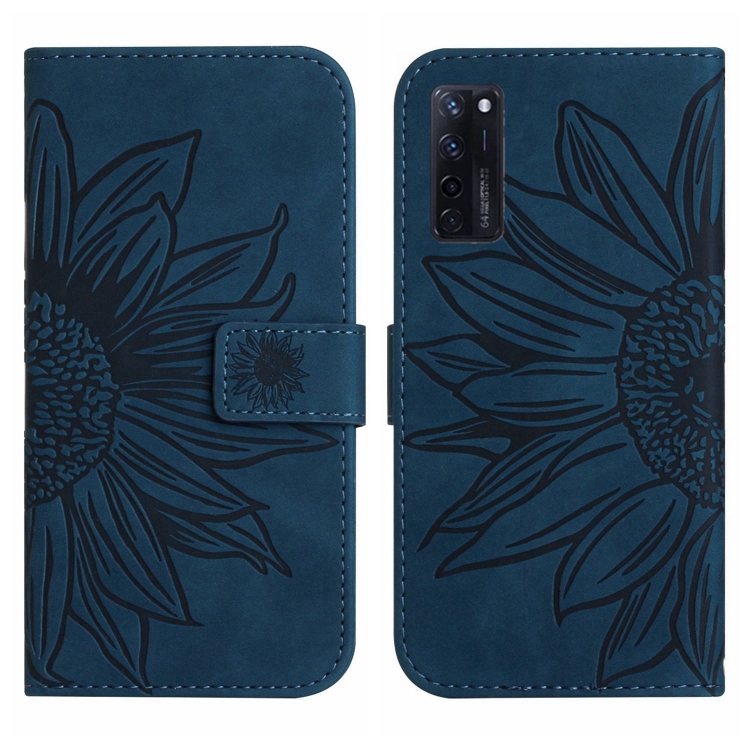 Funda Flip de Cuero para ZTE Axon 20 4G/20 5G con Cordón y Diseño Sun Flower (Azul Tinta)