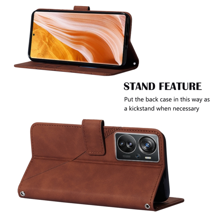 Funda de Cuero con Tapa En Relieve para ZTE Axon 40 Pro Crossbody (Marrón)