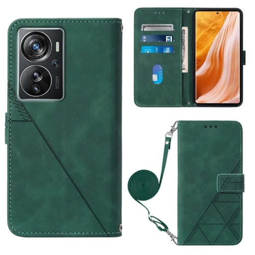 Funda de Cuero ZTE Axon 40 Pro Crossbody 3D con Tapa En Relieve (Verde Oscuro)