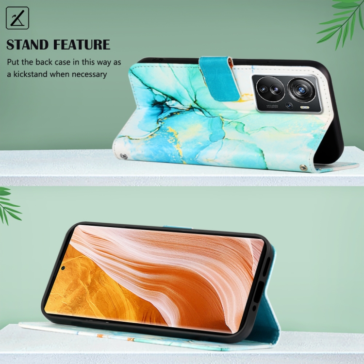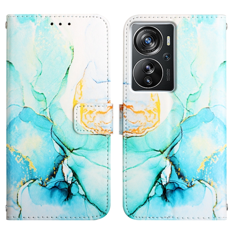 Estuche de Cuero para ZTE Axon 40 Pro Pt003 con Tapa de Patrón de Mármol (Verde)