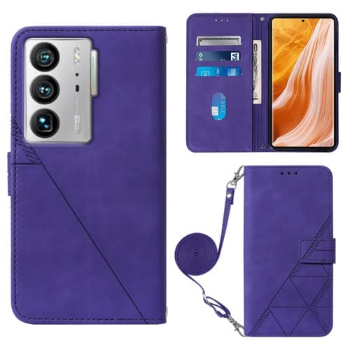 Funda de Cuero Crossbody 3D para ZTE Axon 40 Ultra con Tapa En Relieve (Púrpura)