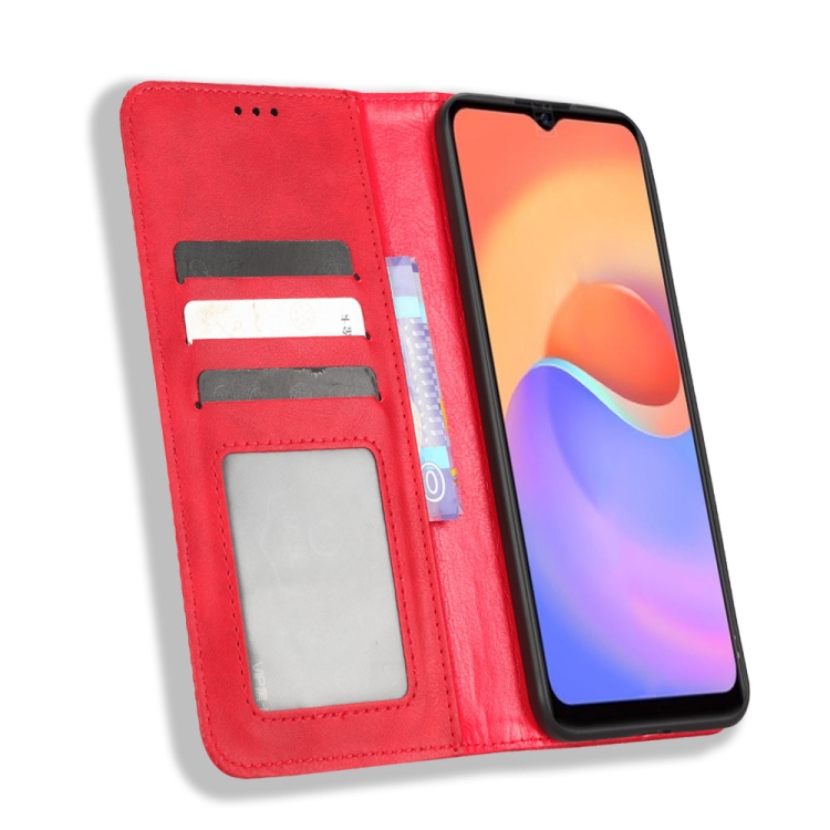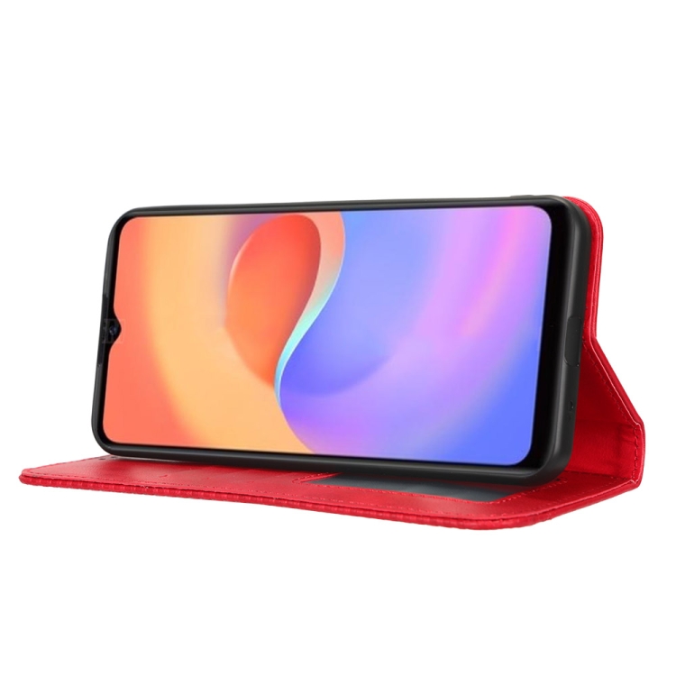 Funda de Cuero para ZTE Blade A52 Lite con Hebilla Magnética y Textura Retro (Rojo)