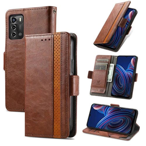 Funda de Cuero Caseneo Splicing Dual Magnetic con Hebilla para ZTE Blade A72 4G (Marrón)