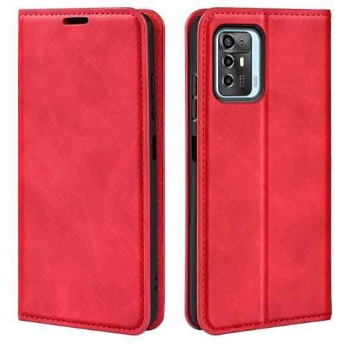 Funda de Cuero para ZTE Blade A72 5G con Succión Magnética de Piel Retro (Rojo)