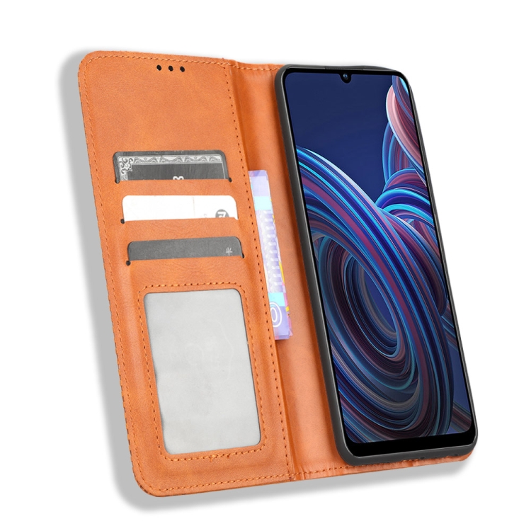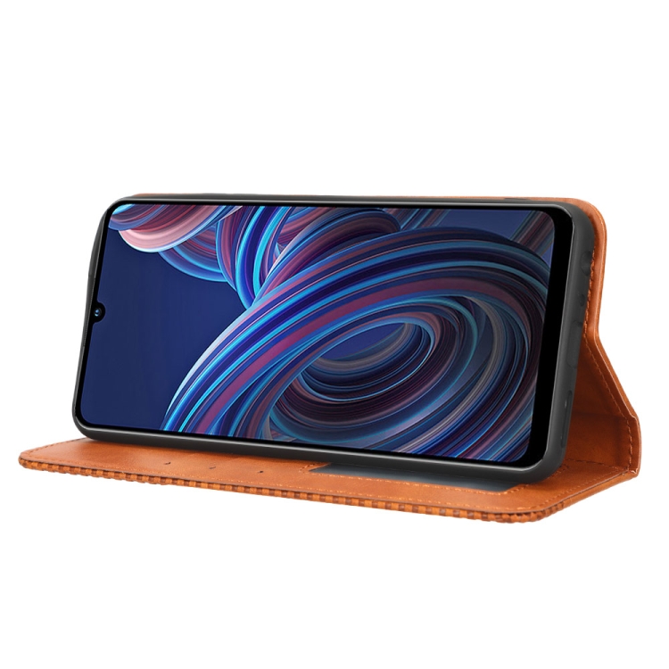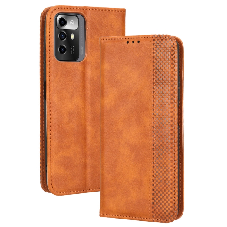 Funda de Cuero para ZTE Blade A72 5G con Hebilla Magnética y Textura Retro (Marrón)