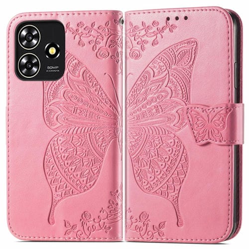 Funda para ZTE Blade A73 4G de Cuero con Relieve Flor de Amor y Mariposa (Rosa)