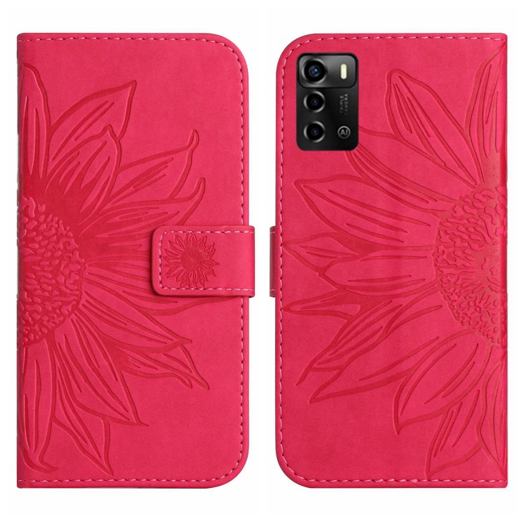 Funda Flip de Cuero ZTE Blade V40 Vita A72 Skin Feel Sun Flower con Cordón (Rose Red)