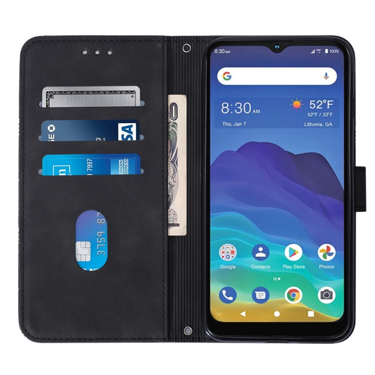 Funda de Cuero ZTE Consumer Cellular Zmax 5G Crossbody 3D con Tapa En Relieve (Negro)