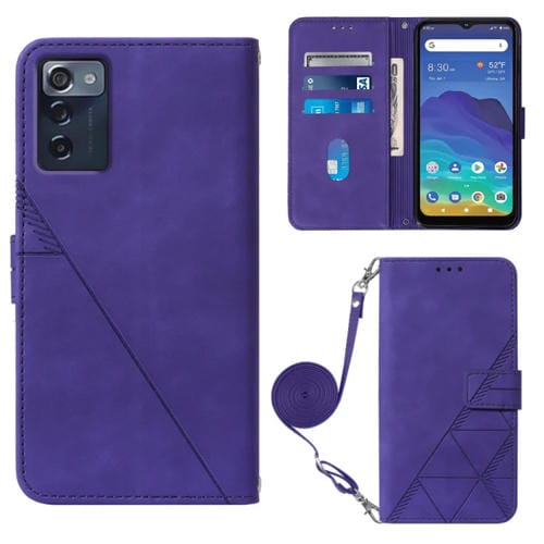 Funda de Cuero con Tapa para ZTE Consumer Cellular Zmax 5G Crossbody 3D (Púrpura)