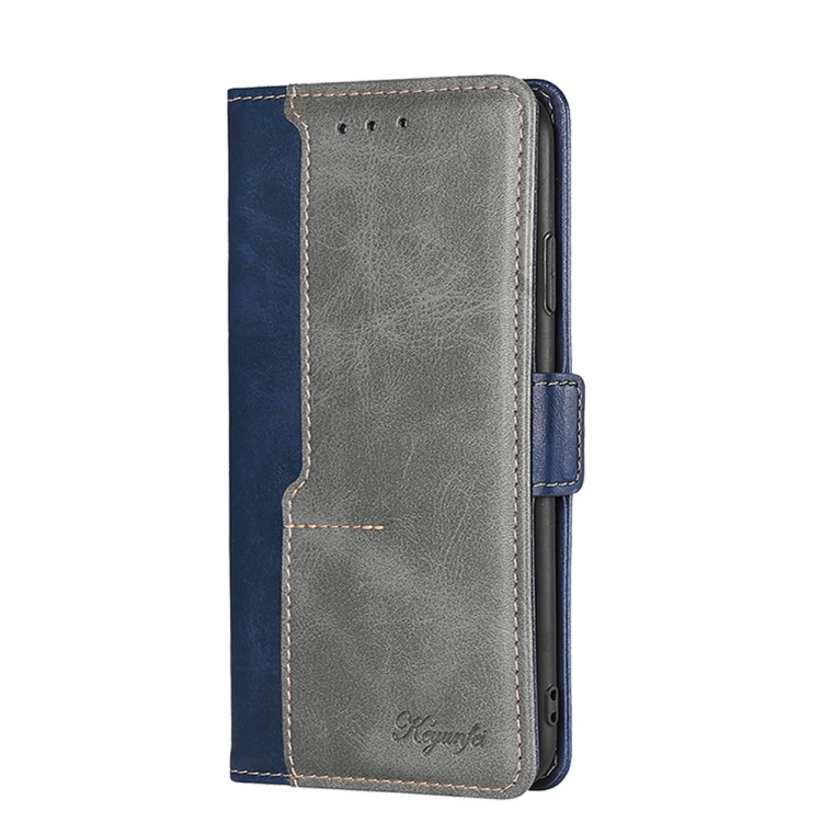 Funda de Cuero para ZTE Libero 5G con Hebilla Lateral y Contraste de Color (Azul + Gris)