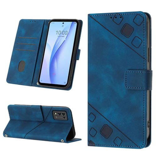 Estuche para ZTE Libero 5G Iii de Cuero en Relieve con Tacto de Piel (Azul)