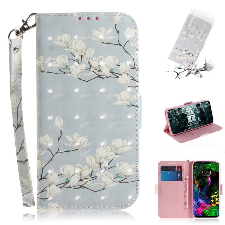 Funda de Cuero con Tapa Horizontal y Soporte para LG G8 Thinq (Mognolia) con Patrón de Pintura 3D y Ranuras para Tarjetas