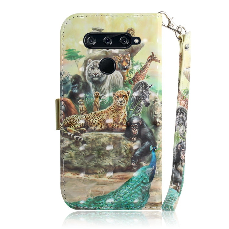 Funda de Cuero con Tapa Horizontal y Soporte para LG V40 Thinq (Zoo) con Patrón 3D y Ranuras para Tarjetas