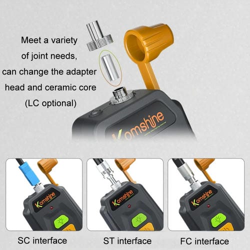 La Pluma de Luz Roja Komshine KFL-Q-30mW Mini es un dispositivo profesional diseñado para la Prueba y posicionamiento de puntos de interrupción en fibras Ópticas. Compatible con Conectores SC, ST y FC, esta Herramienta utiliza un láser de diodo (LD) con una longitud de onda de 650 nm para emitir una luz roja estable que facilita la detección precisa de fallos en la fibra. Su diseño compacto y ligero permite manejarla con una sola mano, mientras que su capacidad de Prueba alcanza hasta 25 km, ofreciendo una solución eficiente para Técnicos y usuarios que reparan por cuenta propia en el campo de las telecomunicaciones. Además, incorpora funciones avanzadas como modulación de frecuencia CW/2Hz, apagado automático para ahorro energético y una Linterna LED integrada para trabajos en entornos con poca iluminación.