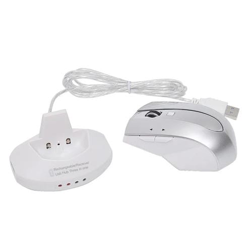 - 1x Ratón Óptico Inalámbrico Mz-011 2.4Ghz 1600Dpi ReCargable con Función Hub (Plateado)