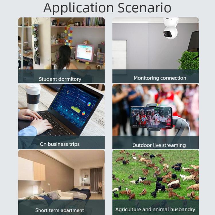 5. Amplia gama de funciones y aplicaciones prácticas.Inserte una tarjeta SIM 4G para transmitir señales Wi-Fi, conéctese a la red y acceda a otros dispositivos a través de Wi-Fi o Ethernet para un acceso rápido y cómodo.