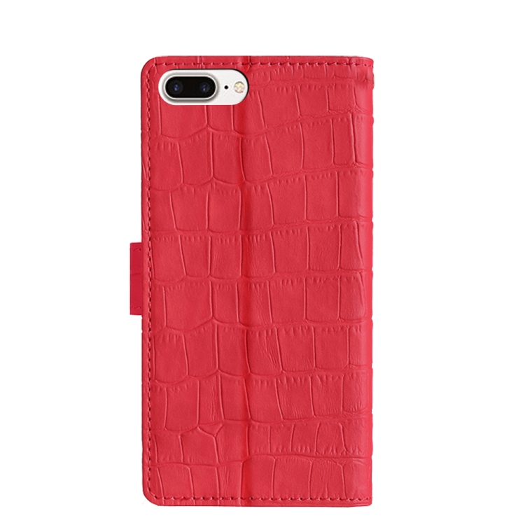 Funda de cuero PU con textura de cocodrilo para iPhone 8 Plus / 7 Plus con cierre magnético, soporte y ranuras (Rojo)
