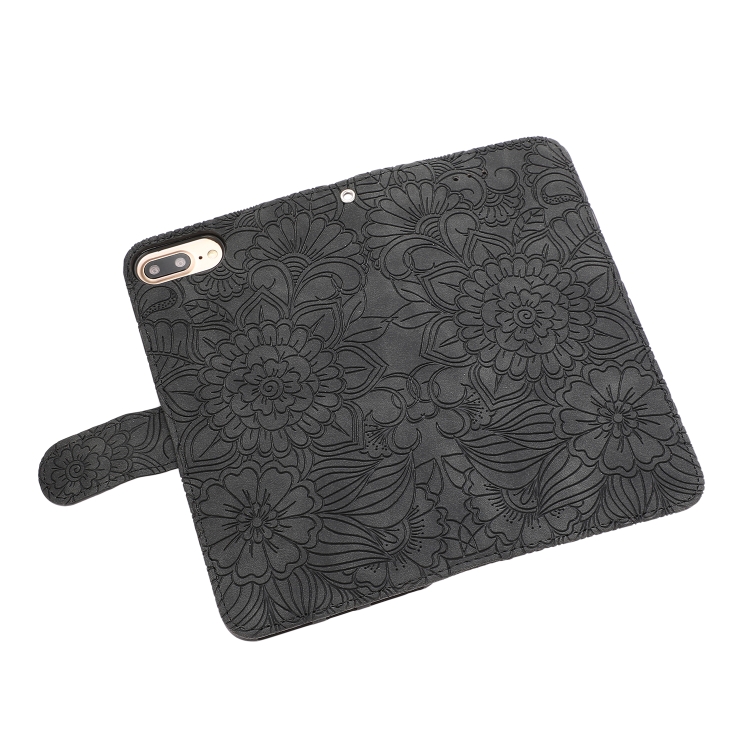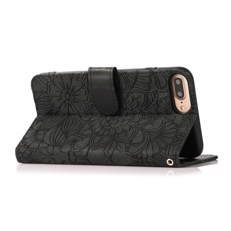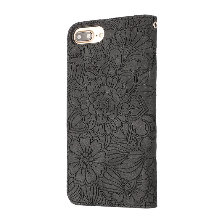 Funda de Cuero Siente la Piel Girasol En Relieve con Soporte y Ranuras para Tarjetas y Billetera para iPhone 6 Plus / 6S Plus (Negro)