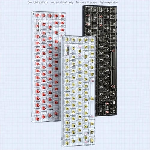 - 1x Teclado Mecánico T-Wolf T40 Transparente para Juegos y Oficina con Luz Mixta RGB de 68 Teclas (Negro)
