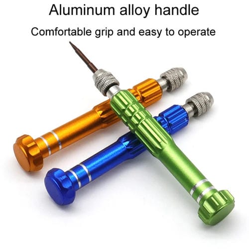 El destornillador de aleación de aluminio 5 en 1 es una herramienta profesional diseñada para el desmontaje y reparación de Teléfonos Móviles y otros dispositivos Digitales. Este modelo combina un mango ergonómico de aleación de aluminio con cabezales intercambiables de broca S2, ofreciendo una solución versátil y resistente para usuarios que reparan por cuenta propia. Su diseño incluye una Tapa Trasera con estructura de Soporte que permite una rotación de 360 grados a alta velocidad, facilitando la operación con una sola mano. Adecuado para la mayoría de tornillos en dispositivos Móviles, este destornillador destaca por su comodidad, precisión y durabilidad, siendo un instrumento esencial para tareas Técnicas de mantenimiento y reparación.