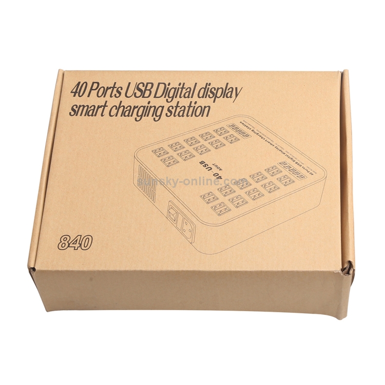 Estación de carga inteligente Wlx-840 200W 40 Puertos USB Pantalla digital AC100-240V (Negro + Naranja)
