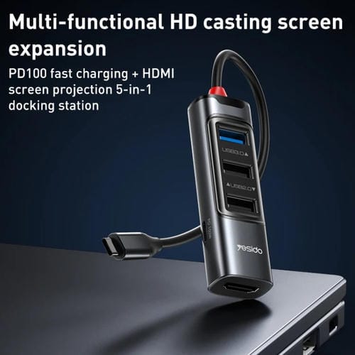 Adaptador Hub Yesido Hb22 5 en 1 Estación de Acoplamiento Multifunción USB-C / Type-C