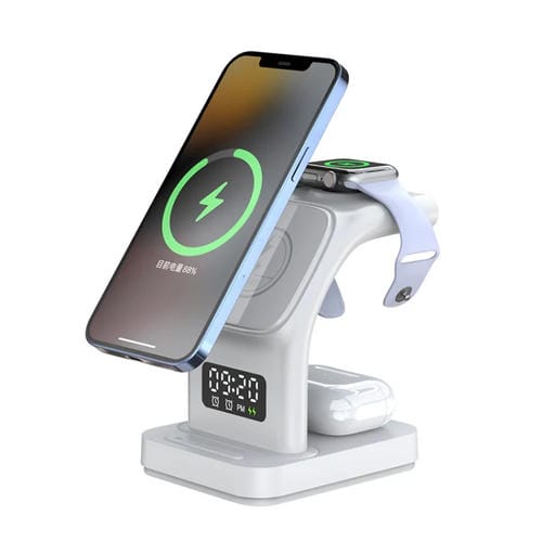 Cargador inalámbrico Yp-Hy05 15W 5 en 1 multifuncional magnético con reloj (Blanco)