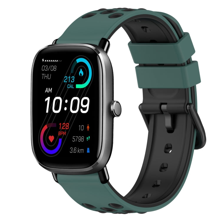 Correa de Reloj para Amazfit Pop 20mm Silicona Porosa Dos Colores (Verde Oliva + Negro)
