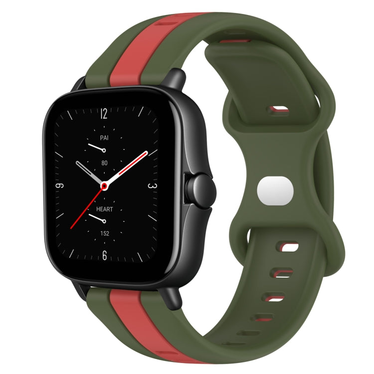 Correa de Silicona para Amazfit GTS 2 20mm con Hebilla de Mariposa (Rojo + Verde Militar)