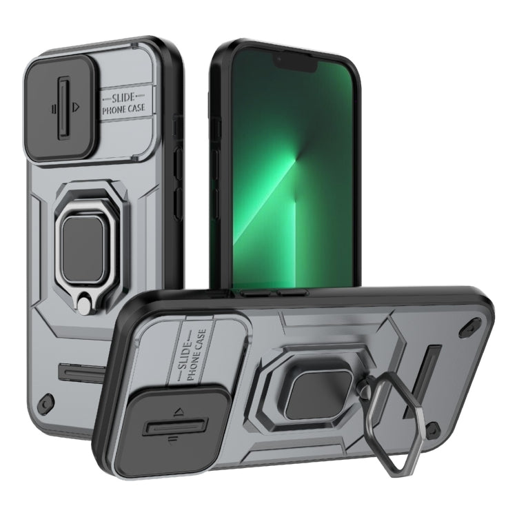 Pour iPhone 13 Pro Sliding Camshield TPU + PC Étui de téléphone antichoc avec support (gris)