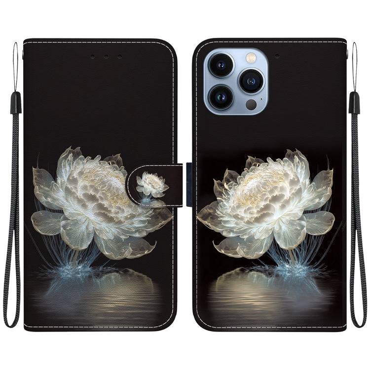Funda para Teléfono iPhone 13 Pro Cuero con Dibujo Coloreado Textura de Cristal (Peonía de Cristal)