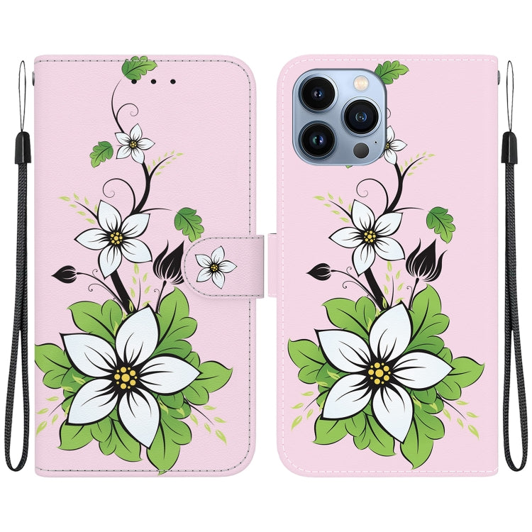Pour iPhone 13 Pro Étui de téléphone en cuir à dessin coloré à texture cristalline (Lily)