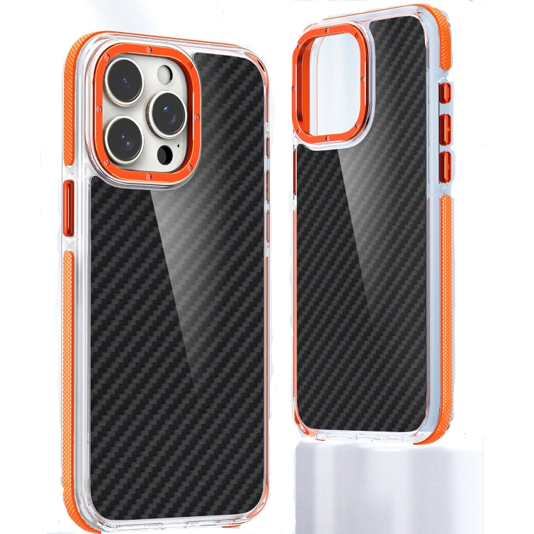 Funda de teléfono híbrida TPU acrílica fibra de carbono para iPhone 13 Pro (Naranja)