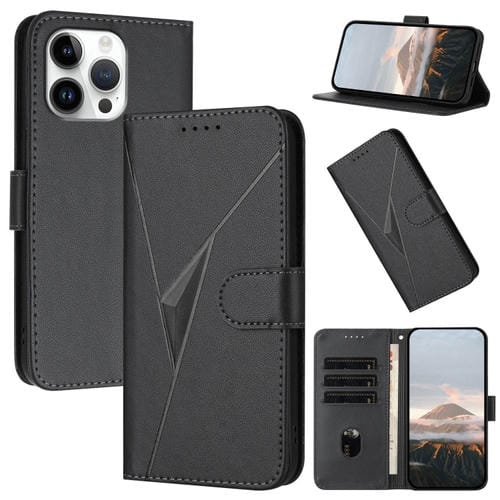 Funda de Cuero para iPhone 16 Pro Max con Cierre de Hebilla y Diseño Triangular (Negro)