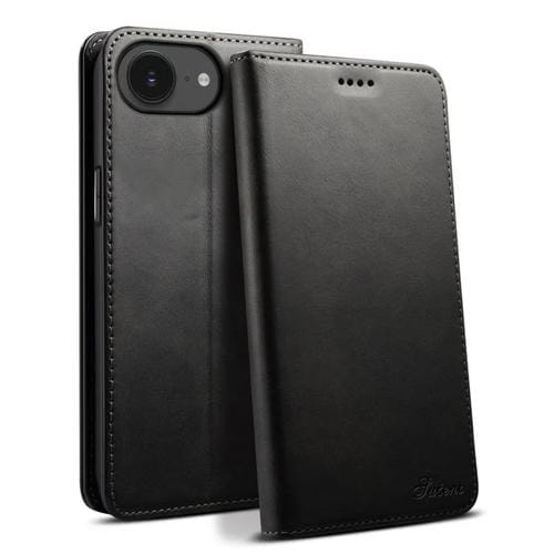 Funda de Piel Suteni con Tapa Horizontal y Textura de Becerro para iPhone 16E (Negra)