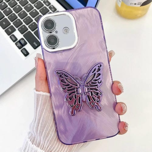 Funda para Teléfono TPU iPhone 16 Soporte Mariposa Película Lente (Morado)
