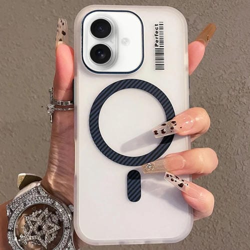 Funda para Teléfono Fibra de Carbono con Soporte Magsafe para iPhone 16 (Gris)