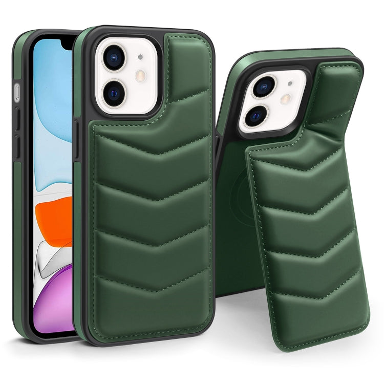 Funda para teléfono iPhone 11 con tarjetero y diseño de chaqueta de plumas y MagSafe (Verde Oscuro)