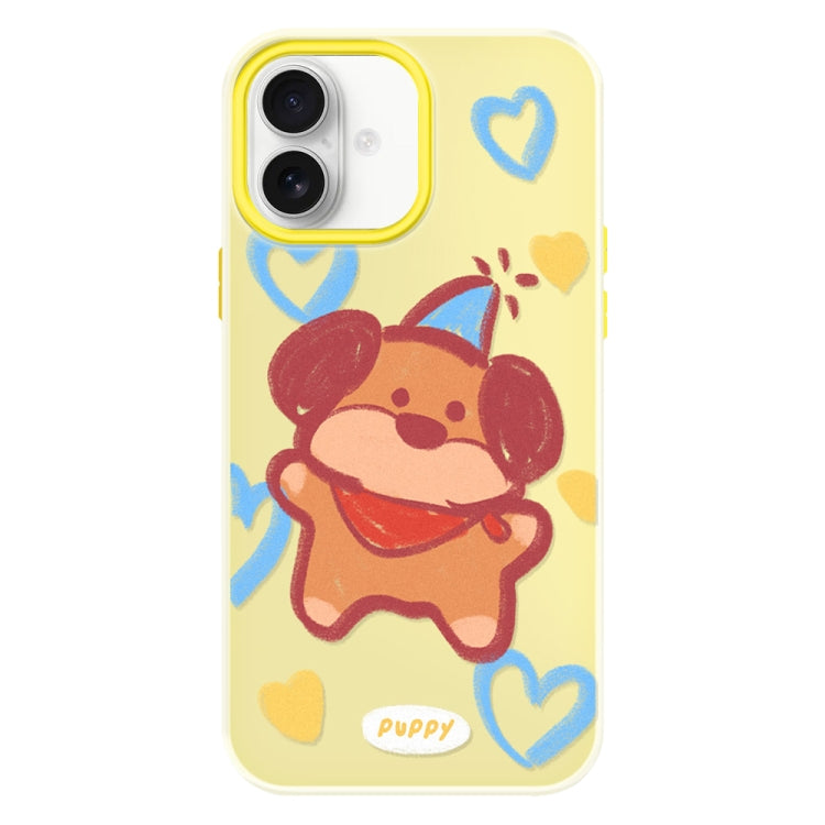 Funda híbrida TPU y Policarbonato iPhone 16 Plus Dibujo cachorro con crayones (Amarillo)